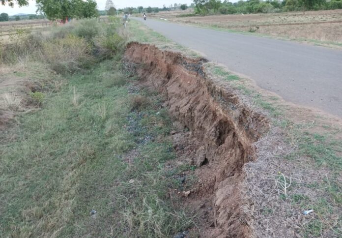 మండల పరిధిలోని గానుగపాడు గ్రామపంచాయతీలోని అన్నారం తండా గ్రామానికి వెళ్లే మార్గమధ్యమున గత సంవత్సరం కురిసిన వర్షపునీరుకి రోడ్డు భాగం కొంతమేరకు కొట్టుకుపోయింది. ఇన్ని రోజులు గడుస్తున్నా అధికారులు దీనిని మాత్రం పట్టించుకునే పరిస్థితి కనపడుటలేదు. మళ్లీ వర్షాకాలం మొదలైనా ఈ సమస్యపై దృష్టి సారించకపోవడం గమనార్హం. ఇప్పటికైనా ఈ రోడ్డుకు మరమ్మత్తులు చేపట్టకపోతే వాహనదారులు ప్రమాదంలో పడే అవకాశం ఉంది. వాహనదారులు రాత్రి వేళ వెళ్లేటప్పుడు ఎక్కువ ప్రమాదాలు జరిగే ఆస్కారం ఉంది. సంబంధిత అధికారులు తక్షణమే స్పందించి రోడ్డుకు మరమ్మత్తులు చేయించి ప్రమాదాల నుండి కాపాడాలని స్థానిక గ్రామస్థులు వేడుకుంటున్నారు.