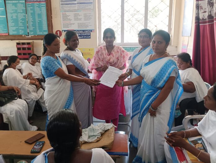 మండలంలోని ప్రాథమిక ప్రభుత్వ ఆసుపత్రి వద్ద ఆశ వర్కర్లకు నష్టం కలిగించే పరీక్ష పెట్టే నిర్ణయాన్ని రాష్ట్ర ప్రభుత్వం వెంటనే ఉపసంహరించుకోవాలని కోరుతూ గురువారం స్థానిక పి హెచ్ సి వైద్యాధికారికి అందజేశారు. ఈ సందర్భంగా ఆశా వర్కర్స్ యూనియన్ సీఐటీయూ మండల నాయకులు రుక్మిణీ మాట్లాడుతూ గ్రామాలలో ప్రజలకు అనేక రకాల వైద్య సేవలు అందిస్తూ, సీనియార్టీ ఉన్న ఆశా వర్కర్లకు మళ్ళీ కొత్తగా పరీక్ష నిర్వహించి, ఆశాలజ్ఞాపకశక్తిని మళ్లీ నిరూపించుకోవాలని చెప్పడం సమంజసం కాదని మండిపడ్డారు. పెరుగుతున్న ధరలకు తగ్గట్లు ఆశాలకు ఇస్తున్న పారితోషికాన్ని 18 వేల రూపాయలకు పెంచి, ఫిక్స్డ్ వేతనం నిర్ణయించాలని, గతంలో ఇచ్చిన హామీల మేరకు ఆశాలకు ఇన్సూరెన్స్ 50 లక్షల రూపాయలు చెల్లిస్తూ సర్కార్ జారీ చేయాలని డిమాండ్ చేశారు. ఈ కార్యక్రమంలో రమాదేవి, రాజేశ్వరి, కుమారి, లక్ష్మీ, అరుణ, తదితరులు పాల్గొన్నారు.
