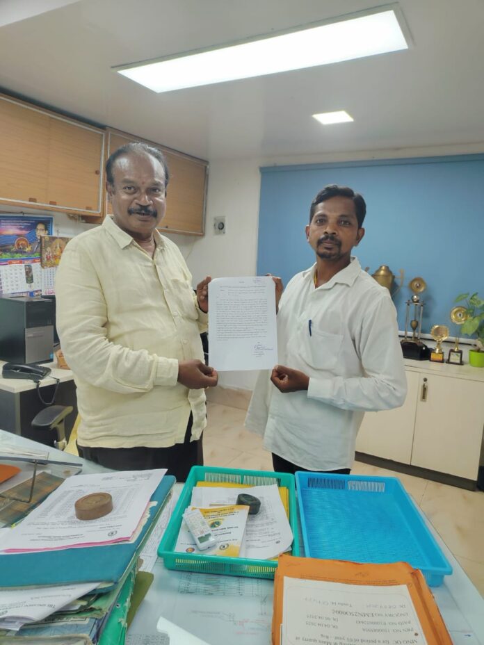 ఏరియా ఎస్ ఓ టు జి ఎం బి. శ్రీనివాసచారికి వినతి పత్రం అందజేసిన సామాజిక సేవకులు కర్నే బాబురావు