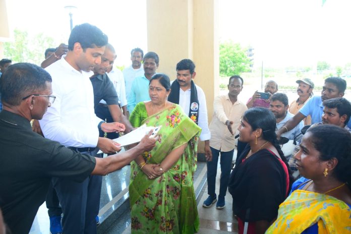 • ఖమ్మం జిల్లా కలెక్టరేట్ ఎదుట ధర్నా అనంతరం కలెక్టర్ ముజమ్మిల్ ఖాన్ కు వినతి పత్రం