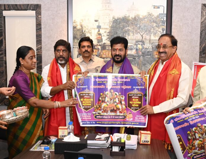 భద్రాచలంలో శ్రీరామనవమి సందర్భంగా నిర్వహించే తిరుకల్యాణ బ్రహ్మోత్సవాలకు రావాలని ముఖ్యమంత్రి రేవంత్ రెడ్డిని మంత్రి కొండా సురేఖ, భద్రాచలం దేవస్థానం అర్చకులు, అధికారులు ఆహ్వానించారు. ఆదివారం సీఎం నివాసంలో స్వయంగా కలిసి సీఎం రేవంత్ రెడ్డితో పాటు ఉప ముఖ్యమంత్రి భట్టి విక్రమార్క, మంత్రి తుమ్మల నాగేశ్వరరావు లకు ఆహ్వాన పత్రిక అందించారు.