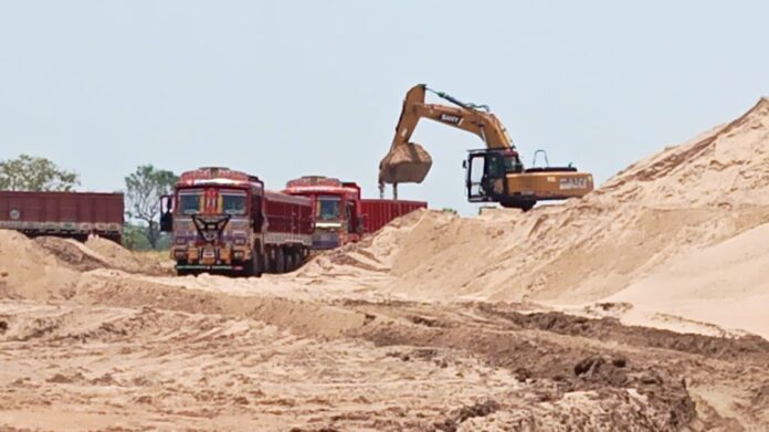 -వారి ఆధ్వర్యంలోనే సొసైటీ ర్యాంపులకు భారీ యంత్రాలతో, టిప్పర్లతో స్టాక్ పాయింట్ కు ఇసుక డంపింగ్