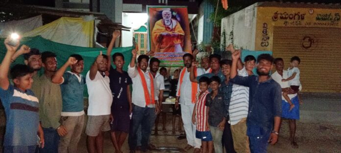 మండల పరిధిలోని పోకలగూడెం గ్రామంలో ఆదివారం మండల బీజేపీ శ్రేణుల ఆధ్వర్యంలో నరేంద్ర మోధీ మూడవసారి ప్రధానమంత్రిగా ప్రమాణ స్వీకారం చేసిన సందర్భంగా ఆయన చిత్రపటానికి పాలాభిషేకం చేసి, ఒకరికొకరు స్వీట్లు పంచుకుంటూ శుభాకాంక్షలు తెలుపుకున్నారు. అనంతరం పెద్ద ఎత్తున బాణాసంచా కాల్చి సంబురాలు జరుపుకున్నారు. ఈ సందర్భంగా మండల బీజేపీ నాయకులు గుగులోత్ శ్రీను మాట్లాడుతూ కేంద్ర మంత్రులుగా బండి సంజయ్, కిషన్ రెడ్డిలకు శుభాకాంక్షలు తెలుపుతున్నానని, మూడోసారి ప్రధానమంత్రిగా ప్రమాణ స్వీకారం చేసిన మోధీ నాలుగోసారి ప్రధానమంత్రిగా చూడాలన్నదే నా కోరిక అని అన్నారు. ఈ కార్యక్రమంలో పోకలగూడెం బీజేపీ నాయకులు, కార్యకర్తలు, తదితరులు పాల్గొన్నారు.